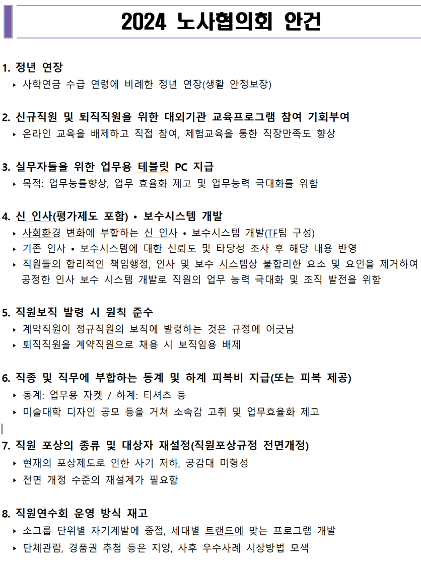 제1회 노사협의회 안건
